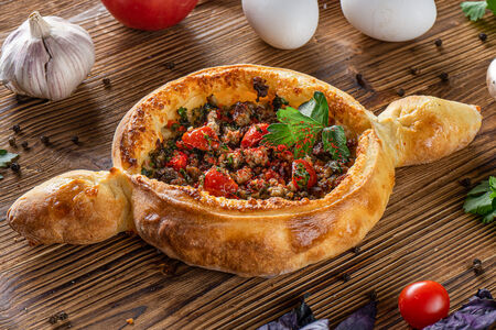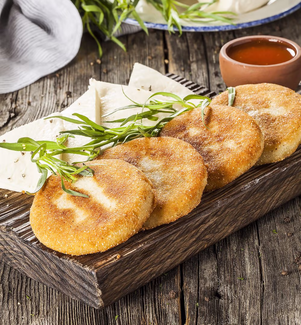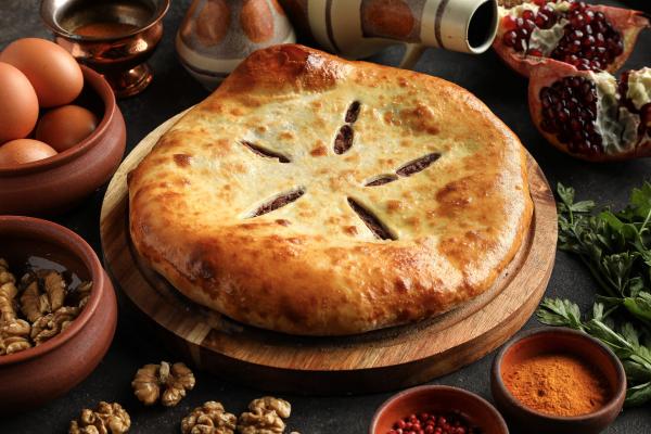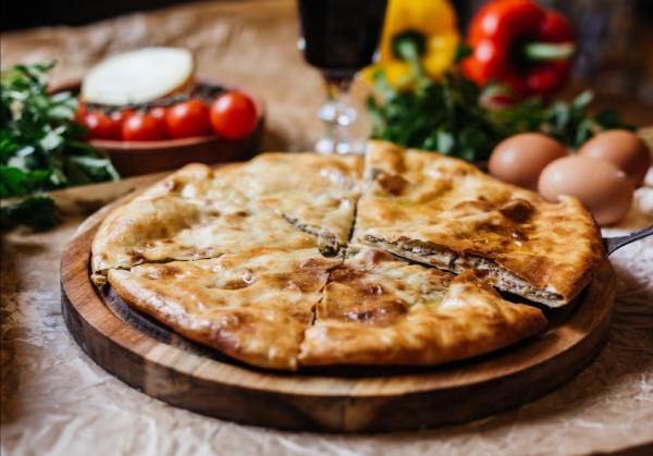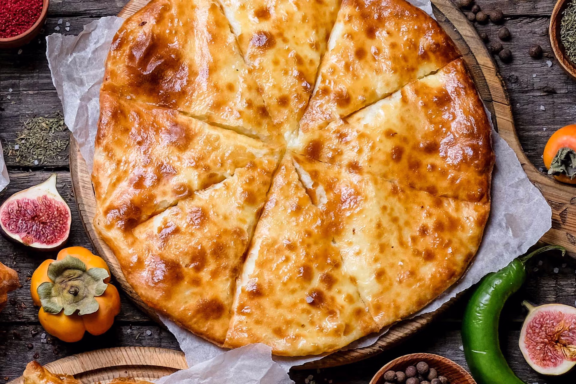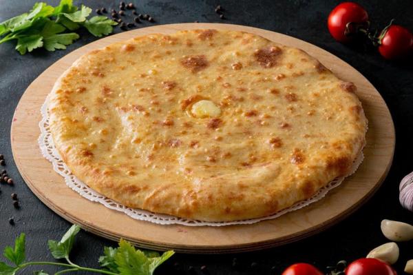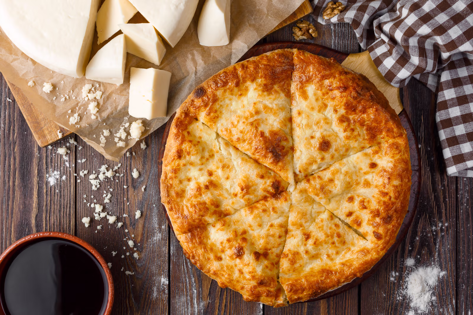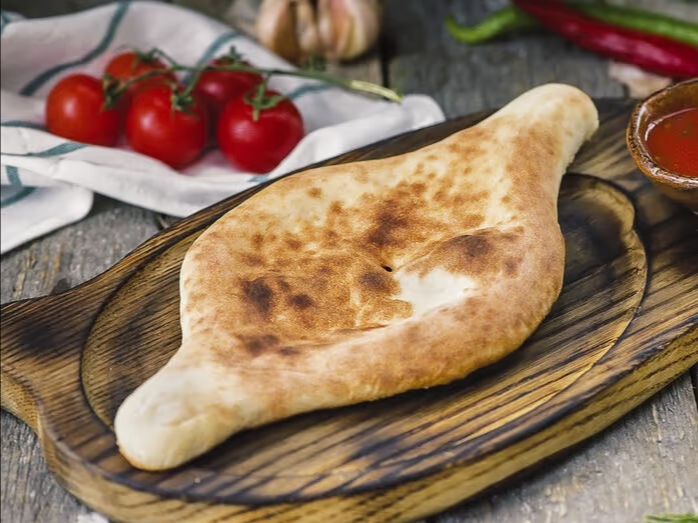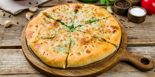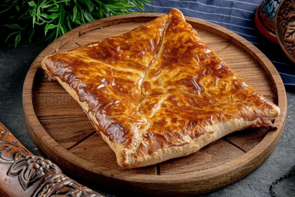 Тонко раскатанное сдобное тесто с начинкой из двойного сыра сулугуни